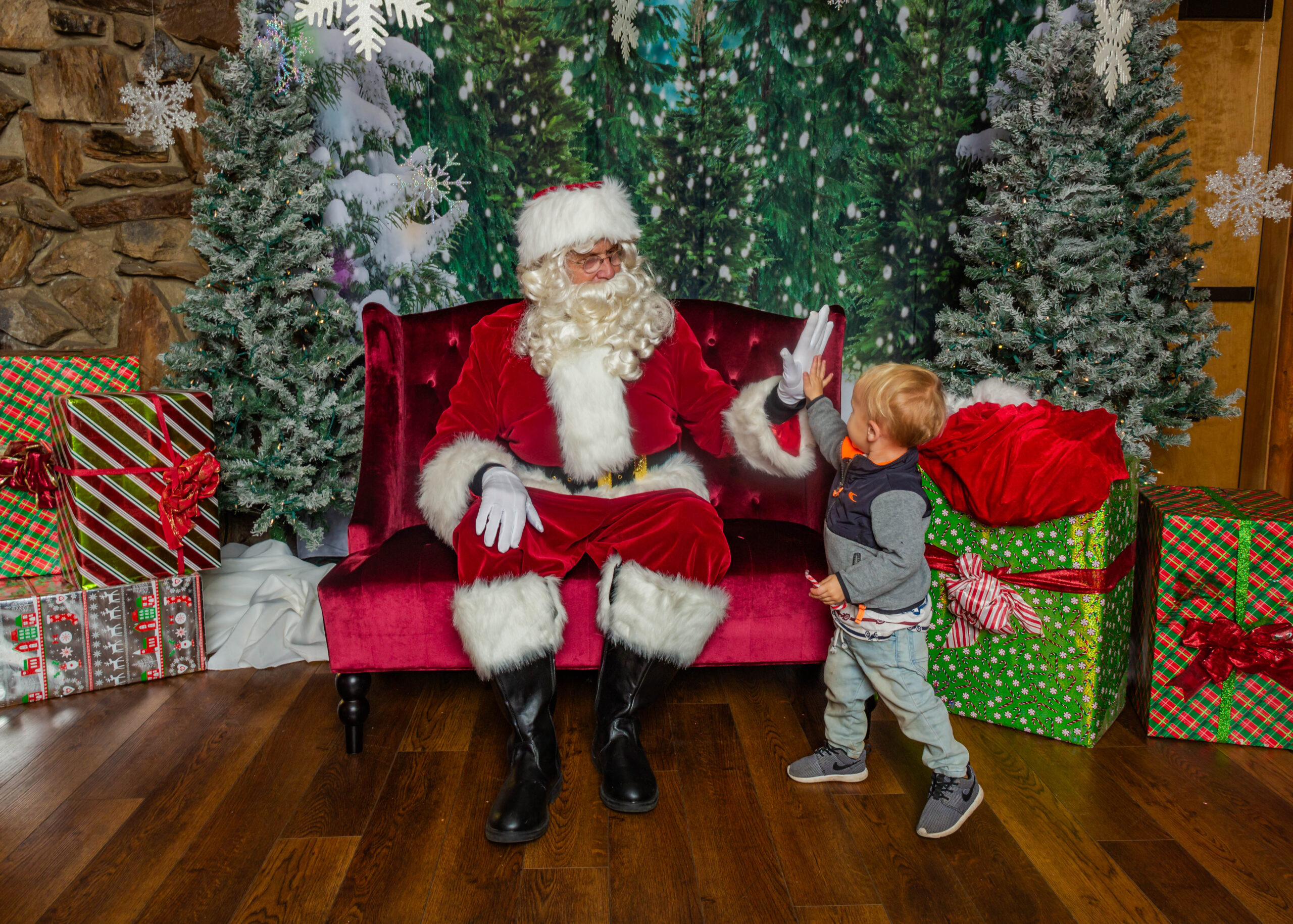 During the holiday season, The Pines Village transforms into a Hallmark-worthy winter wonderland, where twinkling lights illuminate charming storefronts and festive wreaths and garlands fill the air with nostalgic cheer. Stroll through beautifully decorated trees and whimsical displays, sip hot cocoa by the fire, and take in the scenic Bass Lake views—all wrapped in the warm glow and magic of the season.